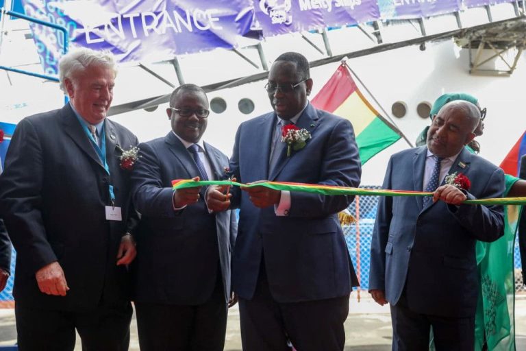Inauguration du Navire hopital « Global Mercy » Le Président Macky SALL et ses homologues de la Guinée-Bissau et de l’Union des Comores ont visité le bateau hôpital Global Mercy Ships.