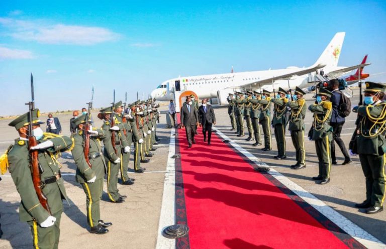Visite du Président Macky SALL en Allemagne Sur invitation de SEM le Chancelier Olaf Scholz d’Allemagne, SEM le Président Macky SALL , Président en exercice de l’Union Africaine, quitte Da