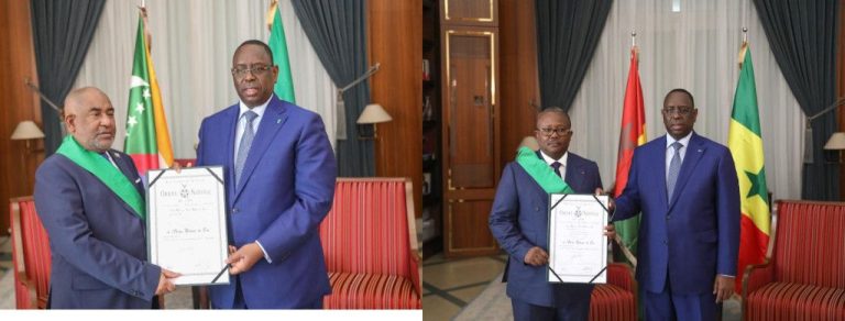 Décoration aux ordres nationaux des Présidents bissau-guinéen et comorien Le Président Macky SALL a décoré cet après-midi ses homologues de la Guinée-Bissau et de l’Union des Comores.